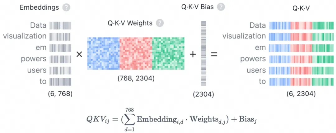 图 4. 从 Embedding 向量到每一层投影后的 Q/K/V 三大向量