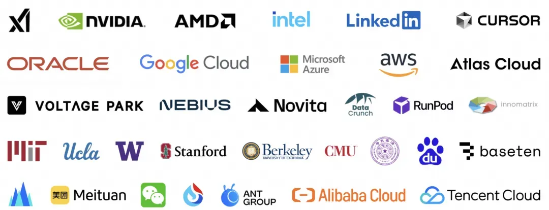 有关 SGLang 通过压缩的 FSM 支持结构化输出,以加速 LLM Inference 的输出效率,以及与闭源的 LLM(譬如 GPT-4)近乎黑盒般交互情况下的 API 级专项执行优化,这里我们就不再赘述了。总之,因其领先的执行效率,包括内存的高效使用,SGLang 在业界的影响力是越来越大。图 17 是 SGLang 官方展示的合作方,覆盖了各大硬件厂商,主流大模型背靠的云厂商金主们,五花八门的 LLMs 应用侧客户,国际知名的高校、研究所等等。