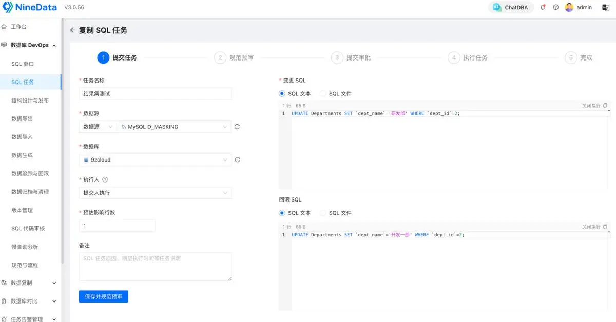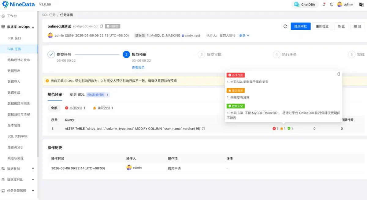 这也是我想推荐 NineData 数据变更审批功能的原因:把“个人直连生产库”变成“团队可控的数据操作”。
