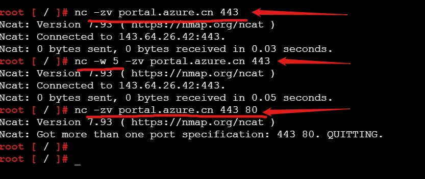 如果 nc 连接成功(显示 "succeeded"),说明网络是通的,问题可能在应用层(如认证失败、TLS 配置错误);