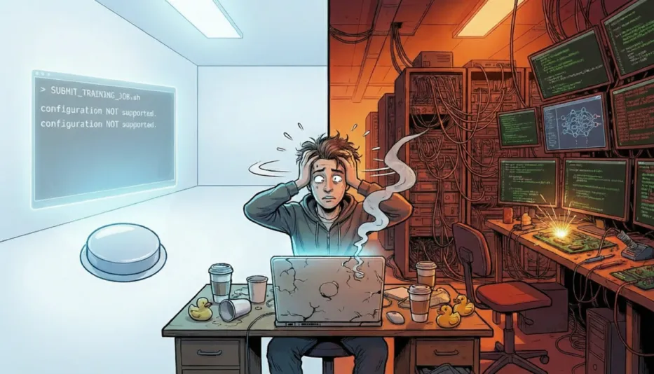 结合我们之前开发 ms-swift 等框架的经验,我们发现主流训练范式对于具备算法背景的开发者而言,仍存在诸多缺憾。比如,完全自定制训练的门槛极高,开发者除了理解训练算法外,还需兼顾 GPU 调度、资源分配及故障恢复等底层工程细节。而以 ms-swift 为代表的通用框架路径,为了降低使用门槛,往往采取了较深的封装,这使得要在训练算法层面进行调整或定制,就会涉及对源码的复杂修改。此外,现有框架通常将算力与算法做了深度的耦合,导致算法开发者,也必须同时承担算力管理的职责。在这种架构上,要将训练框架进行“服务化”,需要面临较大的适配挑战。