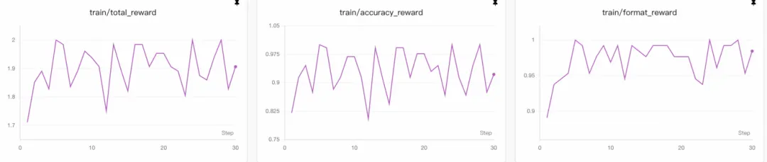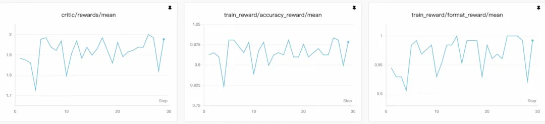可以看出,两个框架在训练过程中展现奖励曲线趋势基本一致,而在训练效率方面,Twinkle 完成一个global batch 的平均耗时约为20 秒,而 veRL约为30 秒。由于我们在昇腾上的优化,Twinkle 的速度稍占优势。