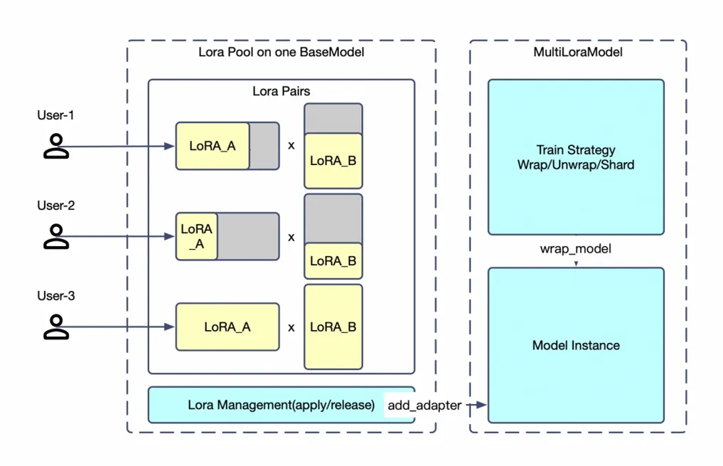 - 多种模式混合训练:用户A进行SFT,用户B进行RL,互不干扰