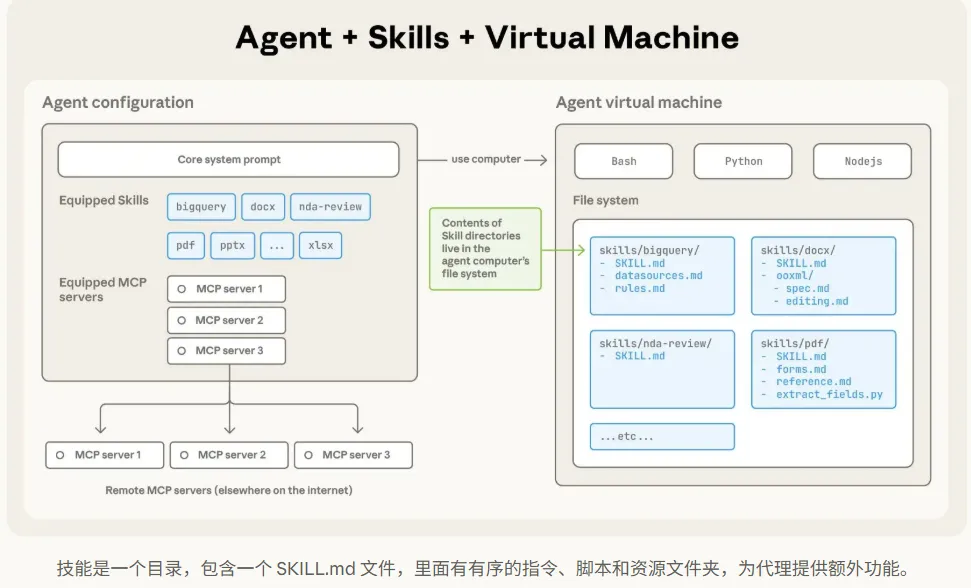 现在,通过 MCP 等协议,我们的模型已经走出了"数字囚笼",能够成功连接到数据库、搜索引擎和各种外部工具。但这引出了一个新的问题:拥有工具,并不等于知道如何完成复杂的工作。 就像你给一个刚毕业的大学生配齐了顶级的电脑和专业软件,但他依然不知道该如何按照公司的标准流程去完成一份完整的行业分析报告。