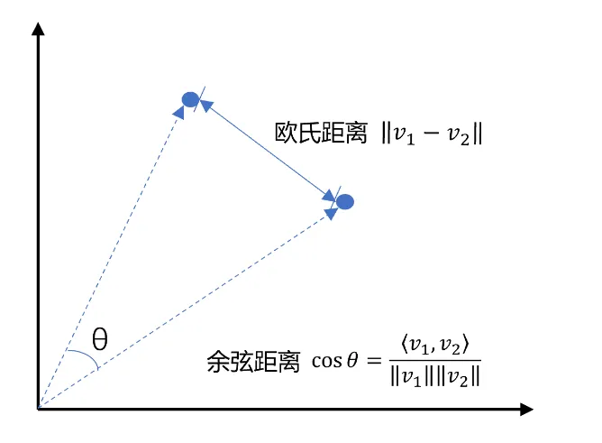 向量是空间中有方向和长度的量,空间可以是二维,也可以是多维。向量既然是在空间中,两个向量之间就一定能计算距离。我们以二维向量为例,向量之间的距离有两种计算方法: