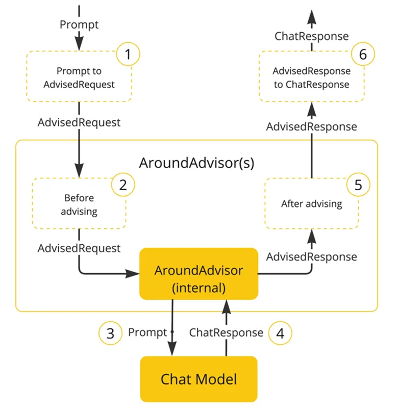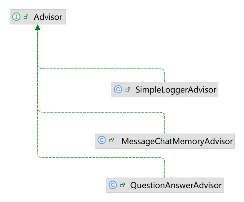 SpringAI基于AOP机制实现与大模型对话过程的增强、拦截、修改等功能。所有的增强通知都需要实现Advisor接口。