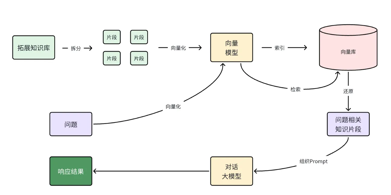 - 受到大模型上下文限制,知识库不能简单的直接拼接在提示词中