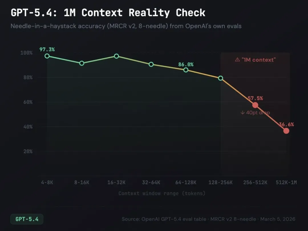 该研究提供了实证支撑:18 个模型在 Terminal Bench 2.0 的测试用例上的表现随上下文长度增加而显著下降,且当上下文中存在低语义相关性的干扰信息时,退化更加陡峭。