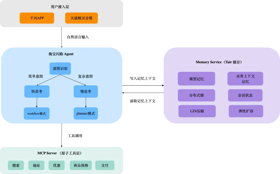 当你对千问说一句"帮我点杯霸王茶姬的伯牙绝弦,少糖去冰,送到公司",背后的 AI Agent 需要在数秒内完成意图识别、地址解析、商品搜索、规格匹配、加购下单等一系列操作。整个过程涉及多轮对话、多次工具调用,每一步都依赖对"之前发生了什么"的准确记忆。