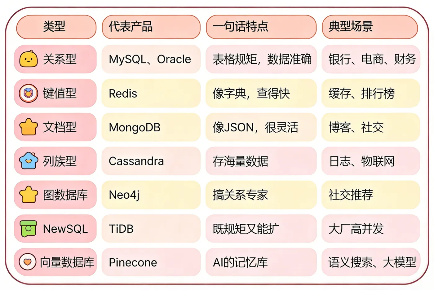 1. 关系型数据库(RDBMS / SQL)—— "规矩的表格党"