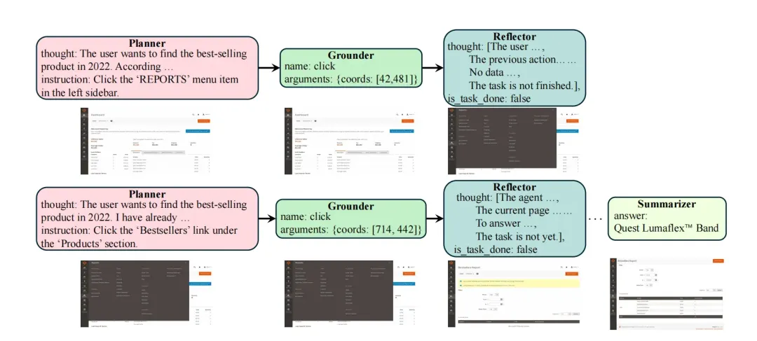 Planner、Grounder、Reflector 和 Summarizer 协同工作