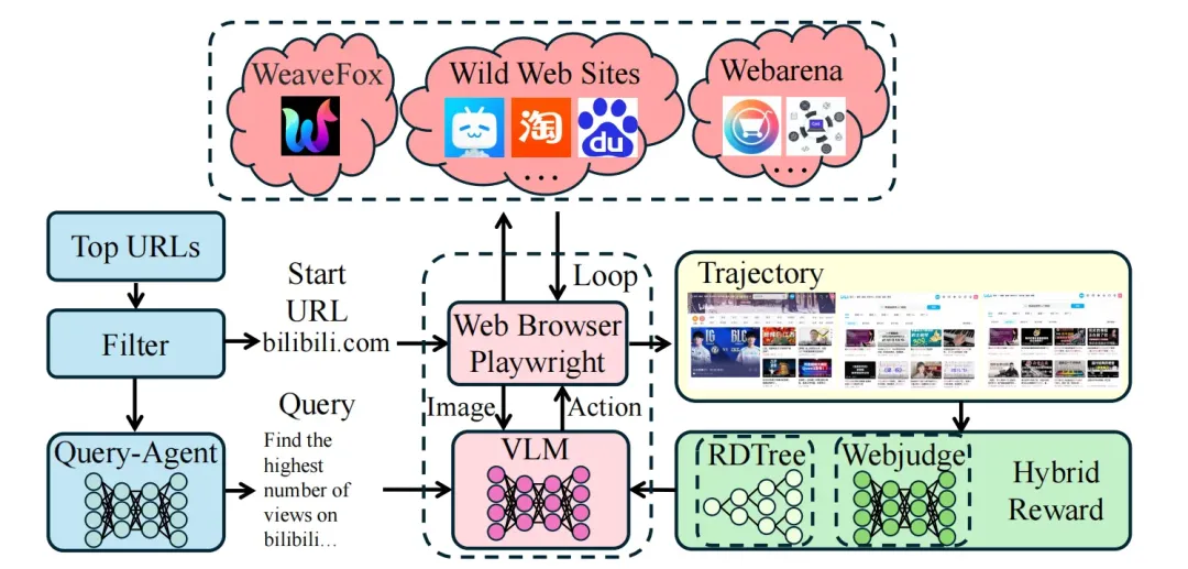- 在线强化学习(Online RL):通过在真实网页环境中的持续交互与试错,模型能够自主掌握动态环境下的稳定操作策略。