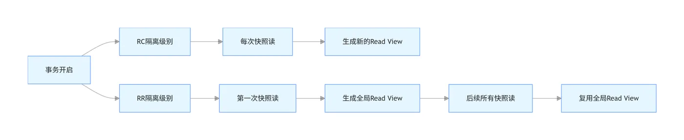 2. RC与RR的核心差异,本质上是锁的粒度与释放时机Read View的生成时机的差异,这两个差异直接决定了两者的并发性能、一致性保证。