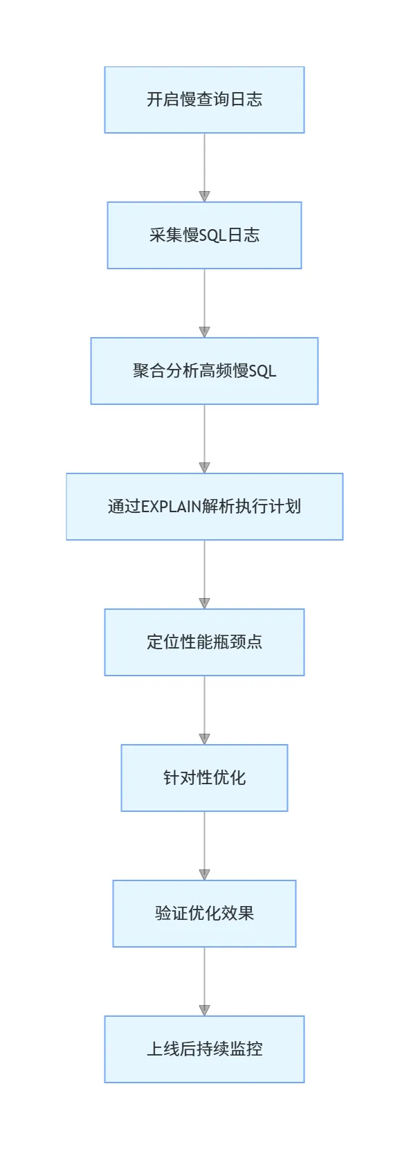 - 先定位,再优化:先通过慢查询日志、APM工具精准定位高频慢SQL,避免盲目优化。