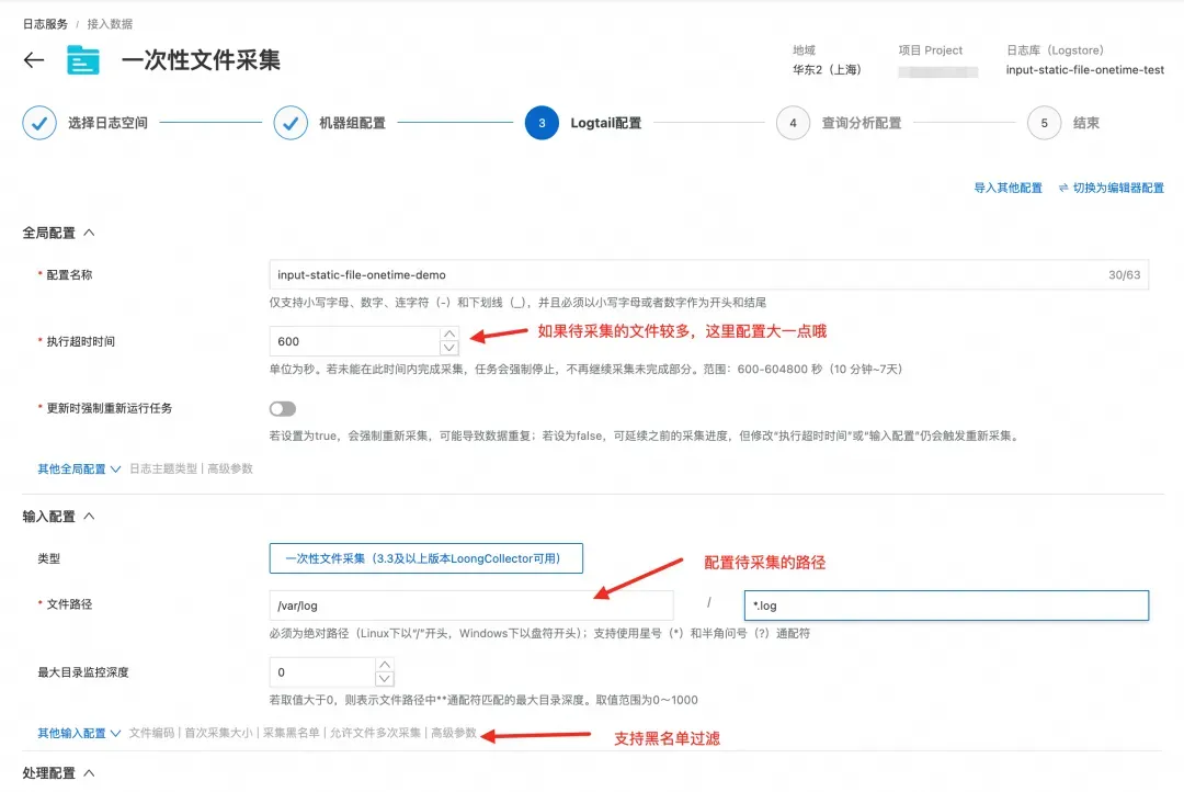 阿里云日志服务已上线一次性文件采集能力,只需三步,即可体验新功能: