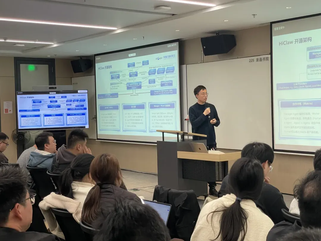 近日,群虾智能——AI 原生应用开源开发者沙龙·杭州站圆满落幕。本场活动吸引了 150+ 名技术从业者深度参与,深度分享了 HiClaw 开源多 Agent 协作系统、CoPaw 智能搭档、Nacos 企业级 Skill 注册中心、LoongSuite 可观测,并设置了动手实操环节。