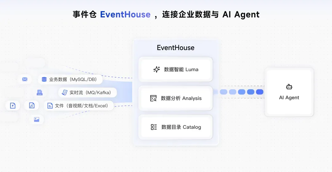 这正是 EventHouse 要解决的问题——为 Agent 提供统一的数据集成桥梁,打造面向 AI 的数据底座。