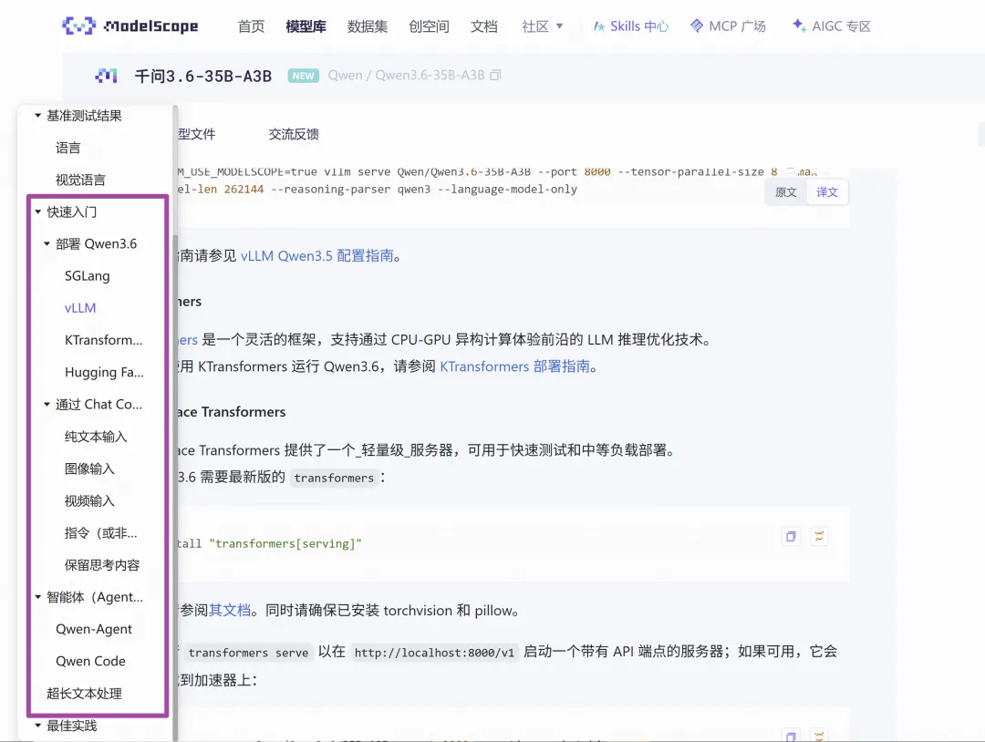 模型权重已在ModelScope 发布,兼容 Transformers、vLLM、SGLang、KTransformers 等主流推理框架。