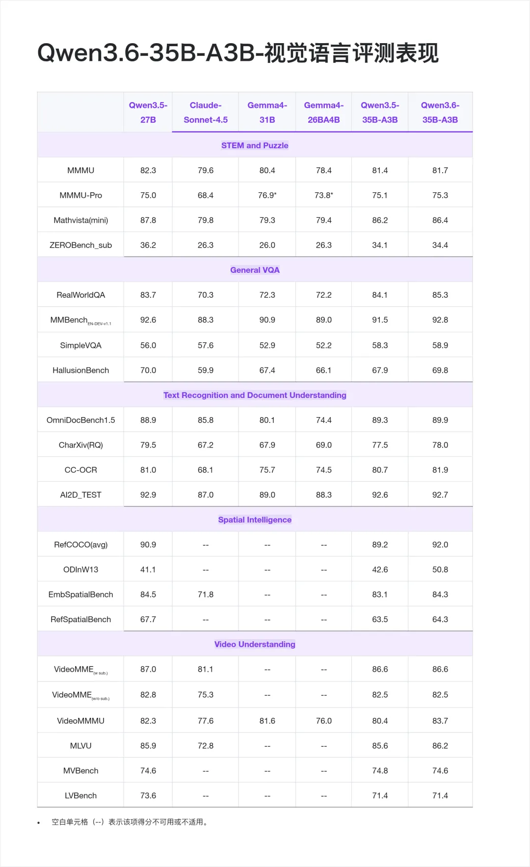 Qwen3.6-35B-A3B 原生支持多模态,在大多数视觉语言基准上表现已与 Claude Sonnet 4.5 持平,部分任务实现超越。具体来看:MMMU 81.7、MathVista 86.4、RealWorldQA 85.3、OmniDocBench 89.9,均高于 Claude Sonnet 4.5 的对应分数。