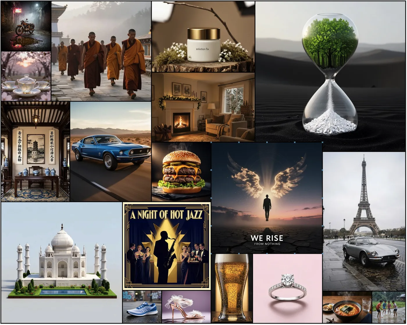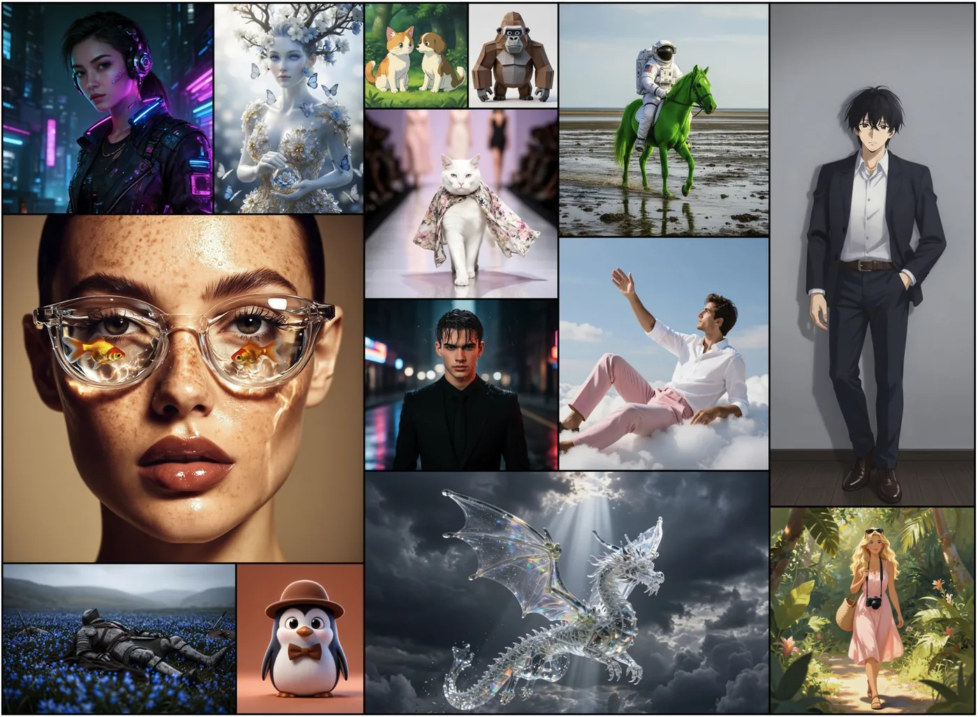 以下所有分数均来自基础模型(无RL、无DPO、无偏好调优),1024×1024分辨率,50步推理,CFG 8.0。