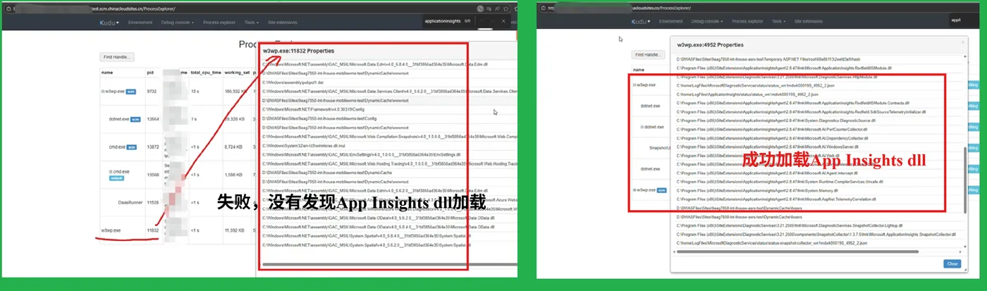 第二:从App Service的w3wp.exe进程是否加载了Application Insights模块