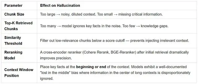 管道看起来简单,魔鬼藏在调参里。每个组件都有直接影响幻觉率的参数: