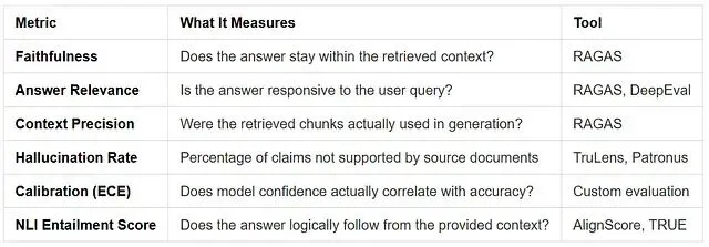 - 持续测量:在生产中跑 RAGAS 忠实度评分和幻觉率跟踪,配置回归告警,定期复盘被标记的响应。