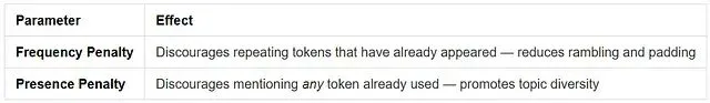 频率惩罚和存在惩罚(Frequency / Presence Penalties)