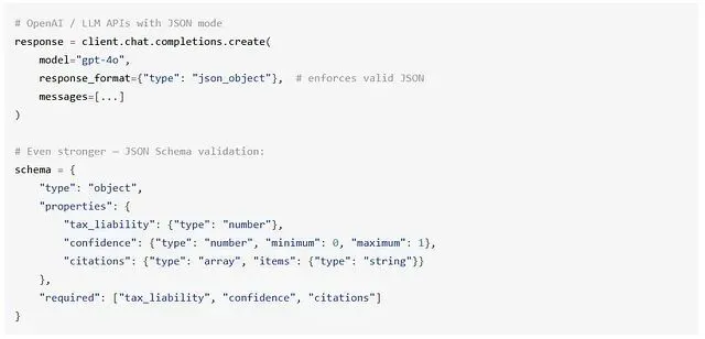 - 强制结构化输出:用受约束解码(JSON Schema、Outlines 或 Guidance)挡掉结构性幻觉。每个响应都要求带 confidence 字段和 citations 数组。