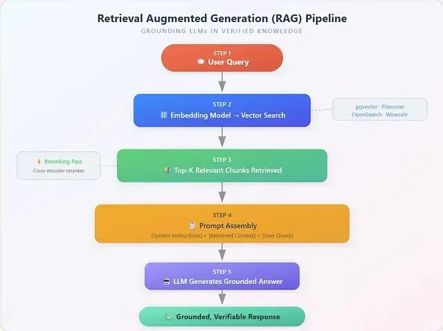 把 LLM 绑定到事实信息上,RAG 是迄今最具杀伤力的一种技术。思路很直白:不让模型去训练数据里回忆事实,而是从经过验证的知识库中检索相关事实,再直接注入到 prompt 里。