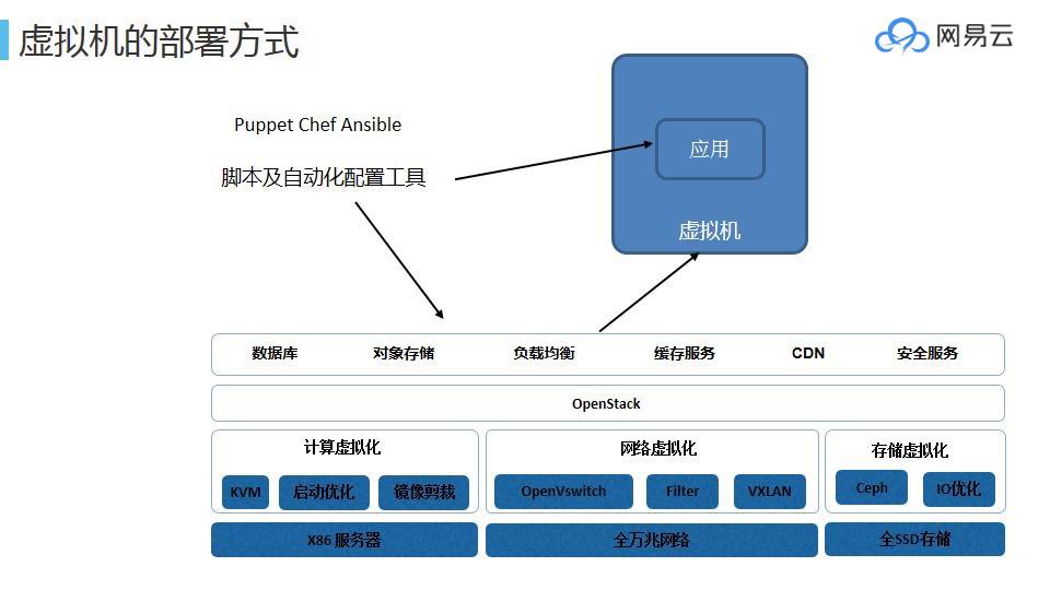 硬件上,网易云全部都是五星级的机房,多线BGP网络接入,万兆网络互联,全SSD存储。