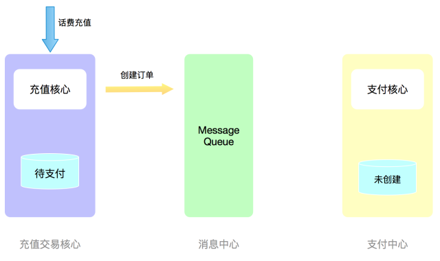 就以话费充值为例,我们采用可靠事件的模式来实现最终一致性。