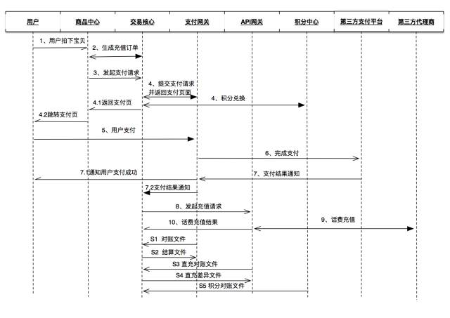 电商社区——话费充值中心,核心业务流程为: