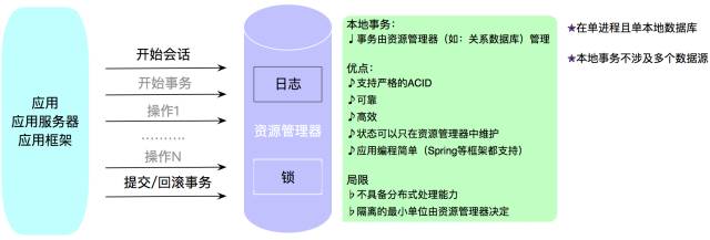 在传统的本地事务中,为了保证数据一致性,我们只需要先开始一个事务,然后进行新增、修改、删除等操作,然后提交事务,如果发生异常就回滚。
