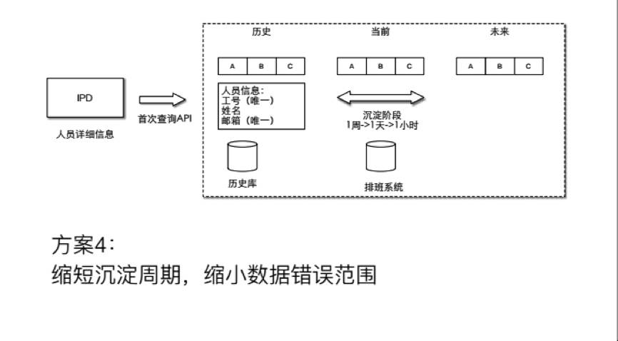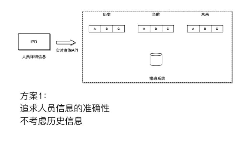 方案二是轮询信息,让排班系统调用API轮询查看人员是否发生变化。但这也不是一个好的方法,对IPD压力过大,也没有必要。