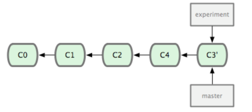 现在,合并后的 C3(即现在的 C3’)所指的快照,同三方合并例子中的 C5 所指的快照内容一模一样了。最后整合得到的结果没有任何区别,但衍合能产生一个更为整洁的提交历史。如果视察一个衍合过的分支的历史记录,看起来更清楚:仿佛所有修改都是先后进行的,尽管实际上它们原来是同时发生的。