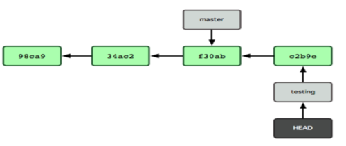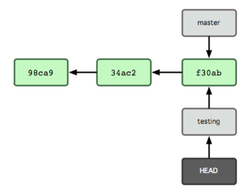 要切换到其他分支,可以执行命令git checkout,如切换到新建的testing分支: