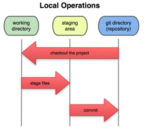 由此我们看到 Git 管理项目时,文件流转的三个工作区域:Git 的本地数据目录,工作目录以及暂存区域。
