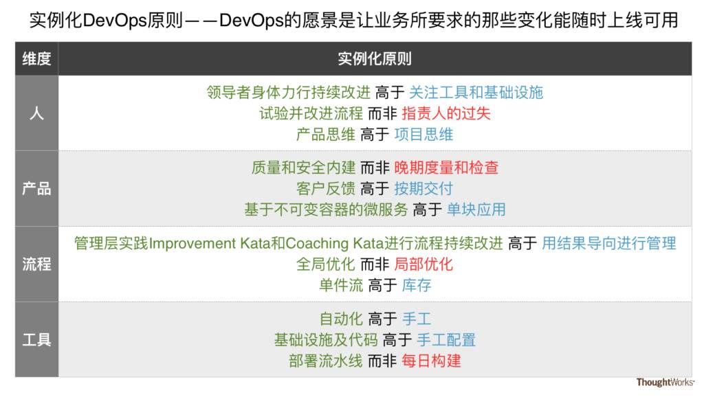 DevOps原则所追求的愿景,就是“让业务所要求的那些变化能随时上线可用”;