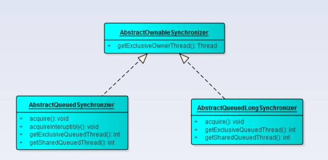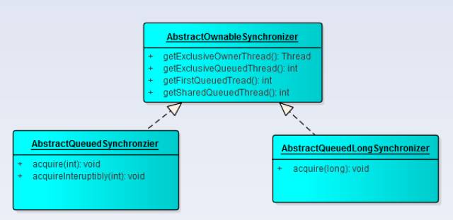 显然,这二个类的代码绝大部分是相同的,只是在AbstractQueuedLongSynchronizer中使用的是long而不是int,那么我们看这二个类的继承类图如下: