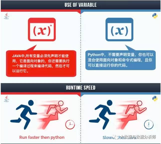 对于初学者,选择一种具有吸引力的,同时有着强大社区支持的语言去学习。现在 Java 和 Python 都满足刚才说的条件,甚至在做了一些很棒的分析比较之后,依然很难得出应该学习哪个语言。庆幸的是,我们有信息图形,可以指出 Python 和 Java 之间一些重要的不同点。