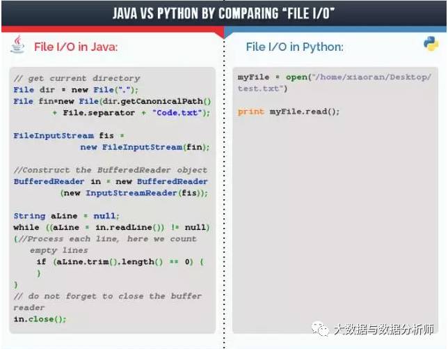 从图表中,你可以很容易看出 Java 比 Python 罗嗦。在 Java 中读一个文件要写10行代码,而在 Python 中只要两行。这一点是 Python 的优势,因为很多新手程序员会喜欢编写很少的代码,第二点则是关于静态变量,动态变量,你需要强类型的语言和严谨的编译器来检测犯二的代码。在 Java 中,你不会看到,在一个字符串变量中接着存整型变量。执行速度是企业级应用的命脉,你可以看到 Java 比 Python 快,但是要记住,你需要编译才能运行 Java 程序,而 Python 程序不要编译可以直接运行。