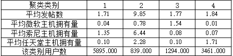 因为我要研究的是这些用户与二手交易相关的行为,因此初步选择变量为发帖数量、微软主机拥有台数、索尼主机拥有台数、任天堂主机拥有台数。