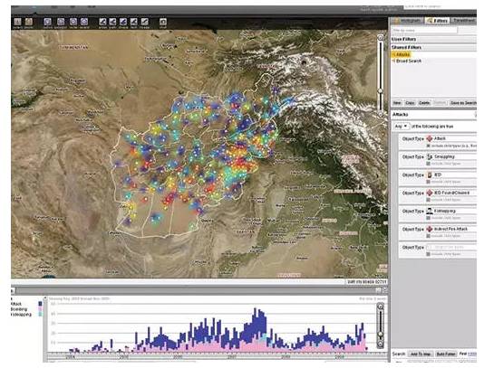 利用这家公司提供的软件,DEA得以在浩瀚的人物、地点以及事件等等元素中间建立复杂的关系链。同时这家公司还吸纳入联邦探员们额外的信息:大毒枭们及他们的马仔们,他们各自的融资渠道以及运毒路线。并且整合了其余的监控信息:银行流水、路边的监控路线、无人机拍摄的视频、线人笔录以及通讯记录等等。