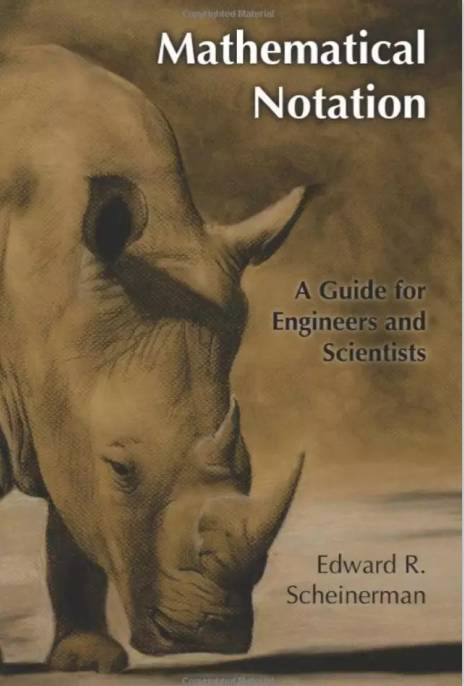 但是,这篇文章无法覆盖到你读一篇论文需要的所有数学符号。所以你会需要一本超级凝练的数学符号指南,Edward R. Scheinerman的MathematicalNotation: A Guide for Engineers and Scientists 。(它是我数学菜鸟的AI学习攻略 文章的一个后继补充,但它是我使用最频繁的一本书。它现在满是高亮和折页。随着数学知识的不断扩充,我一遍又一遍地回头翻阅这本书。)