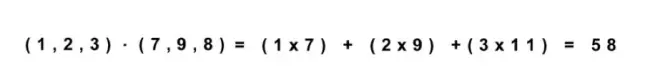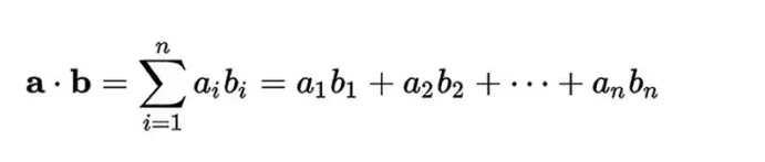 这是两个等长向量的乘积公式。记住在数学菜鸟的AI学习攻略第四部分-张量表示(有猫) 中讲到,一个向量就是一行或者一列数字。我们的矩阵的每一行或者每一列都是一个向量。