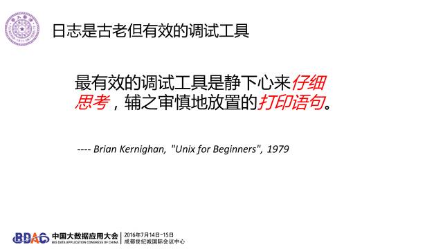 30年之后,谷歌的工程师仍然说“仔细思考和打印语句让我们走到了现在”。打印出来的日志很有意思,它不是结构化的,像自然语言,看着就是一大堆字。这些字怎么看?不知道,