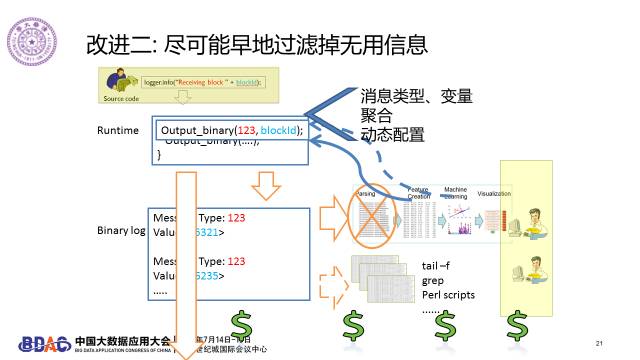 这个改进还不够。你根本不应该采取很多没意义的数据。当然,你不采你怎么知道它没有意义。基于机器学习算法,我可以提前告诉系统哪些日志是没有用的,可以尽早扔掉,用来节省更多的计算、存储和网络资源。