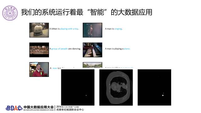 这是我们自己做的一些科研项目,比如这里是一些视频,旁边的字是自动生成的,叫做视频自动加字幕。还有一个是医疗方面的,自动判读胸部CT,到底哪里有结节都可以读出来,都是智能的应用。这些应用和传统企业IT不一样,需求每天变,要的都是不一样的架构和计算能力,所以我们需要不断调整系统。
