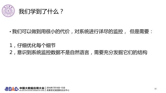我们学到了什么?首先,系统监控一定要做,如果觉得它太贵,我们可以详细优化每一个细节,是不是做了压缩,是不是做了所有可能的事情,来减少数据采集的开销。